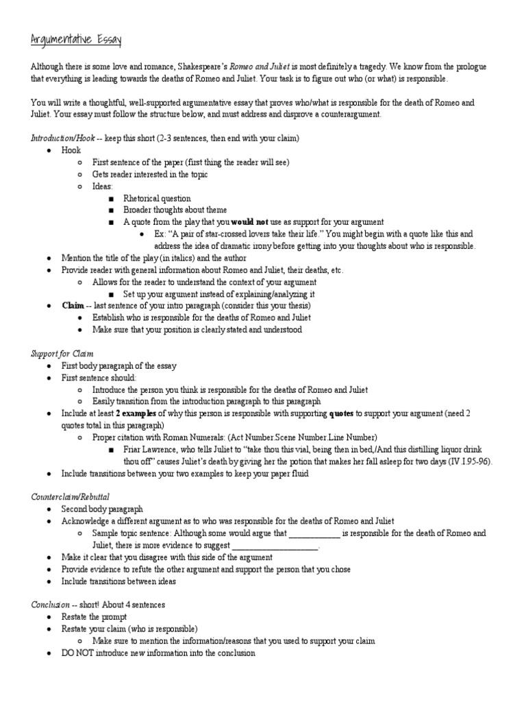 Romeo And Juliet 5 Paragraph Essay